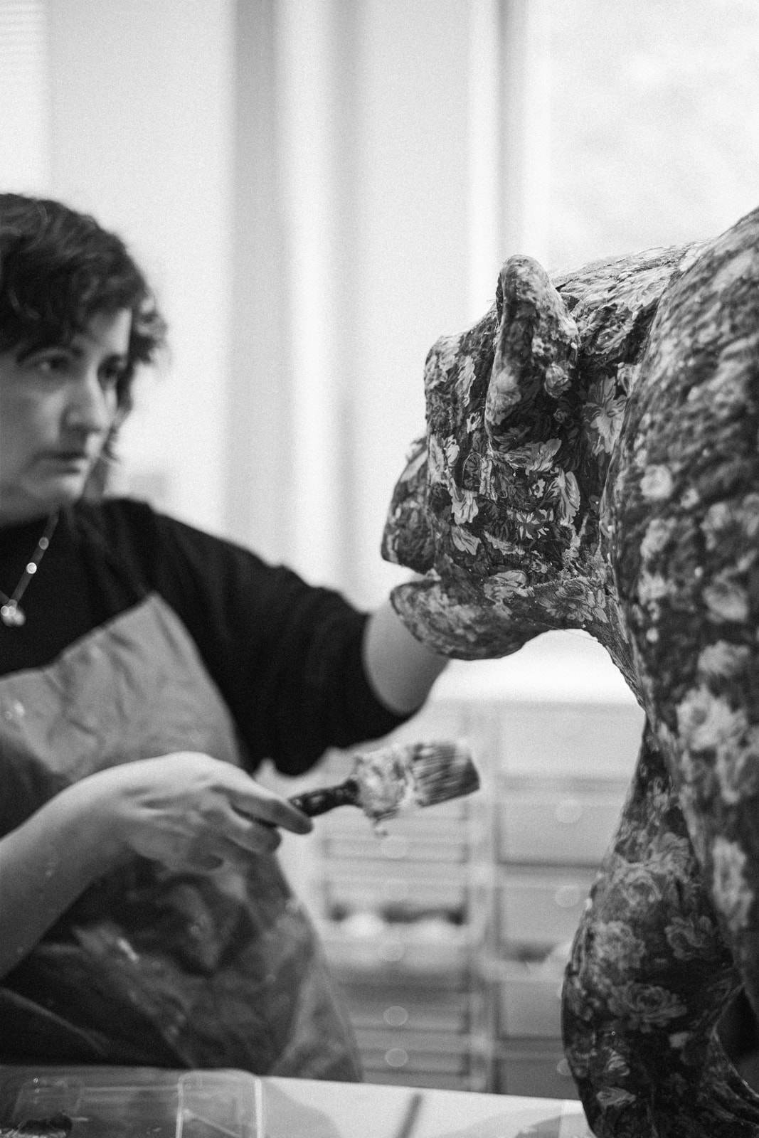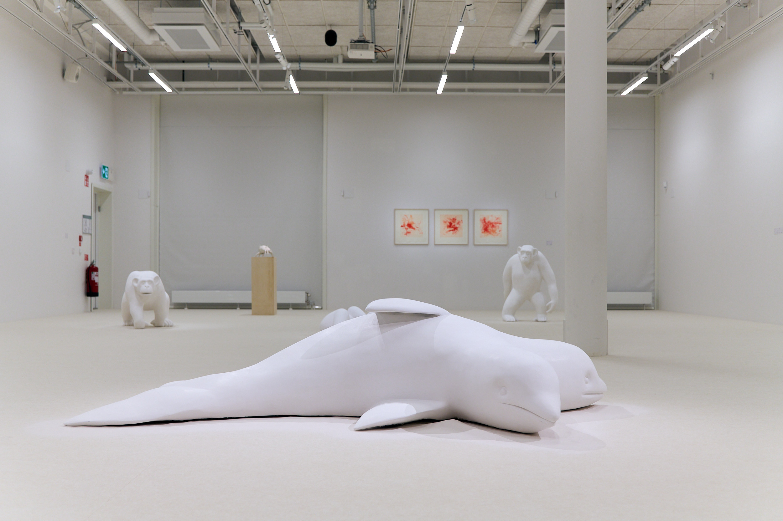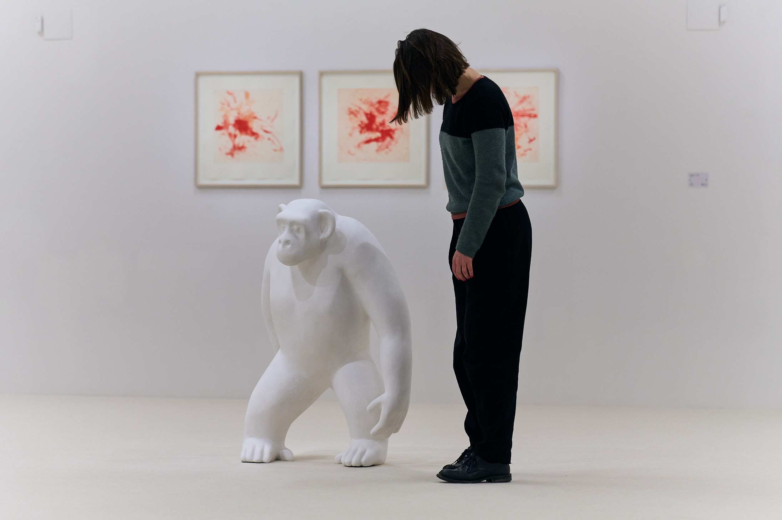 I utställningen ANIMALIA möter vi skulpturer som lånar namn av kända schimpanser, en val med två huvuden, en skimrande mördarsnigel och en svit grafiska blad som baseras på konstnärens försök att måla som en apa.