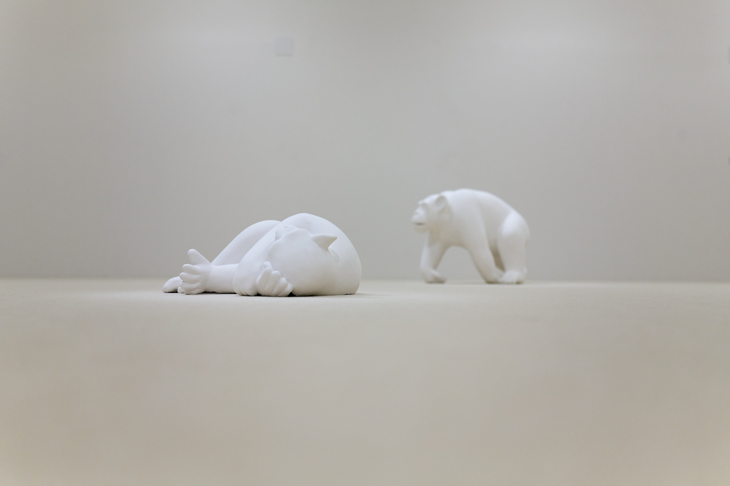 På några podier kan vi beskåda en larv, Baby och en råtta Clean Kill också i skimrande keramik. I naturen tillhör de också ofta de oälskade djuren. De vi kallar för skadedjur. Är det de eller vi som måste veta sin plats?